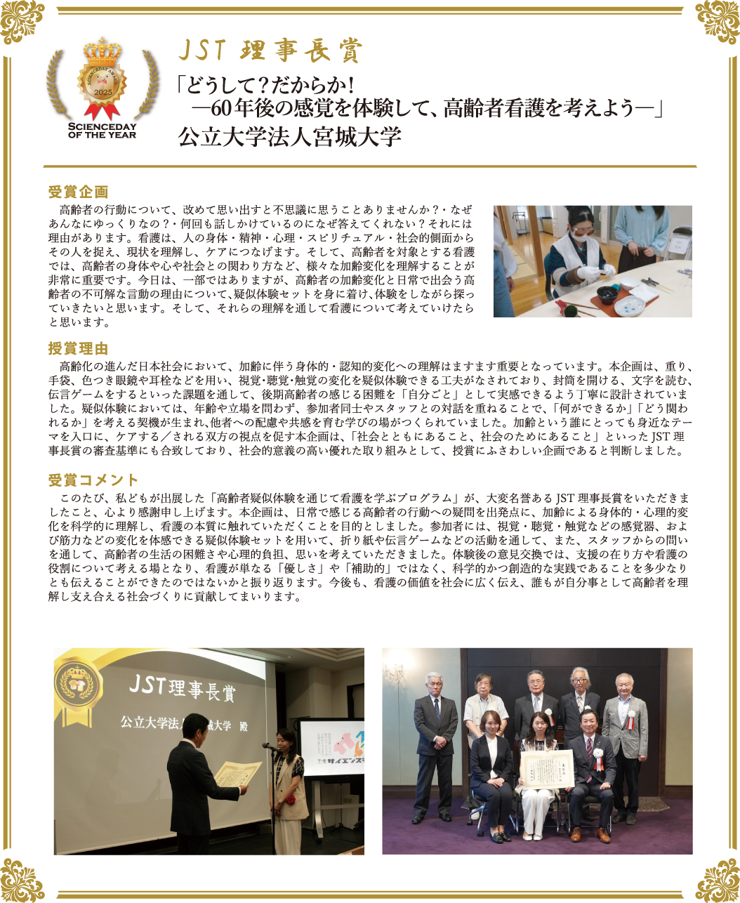 → JST理事長賞 受賞企画概要はこちらをご覧ください