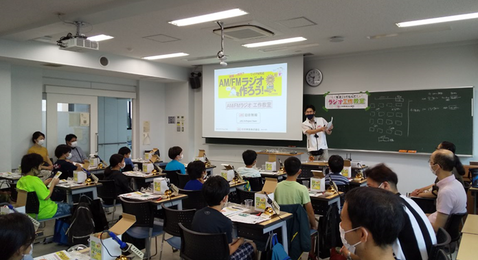 この放送は「ワイドFM」と呼ばれ、AM放送と同じ内容を、FMの電波でクリアな音質で楽しむことができます。本プログラムでは、AMとワイドFMの両方を受信できるラジオを、部品のはんだ付けから自分の手で組み立てることができます。完成したラジオは無料でお持ち帰りいただけます。また、夏休みの自由研究にも役立つ「電波についてのお話」では、AMとFMの違いなどについて学ぶことができます。